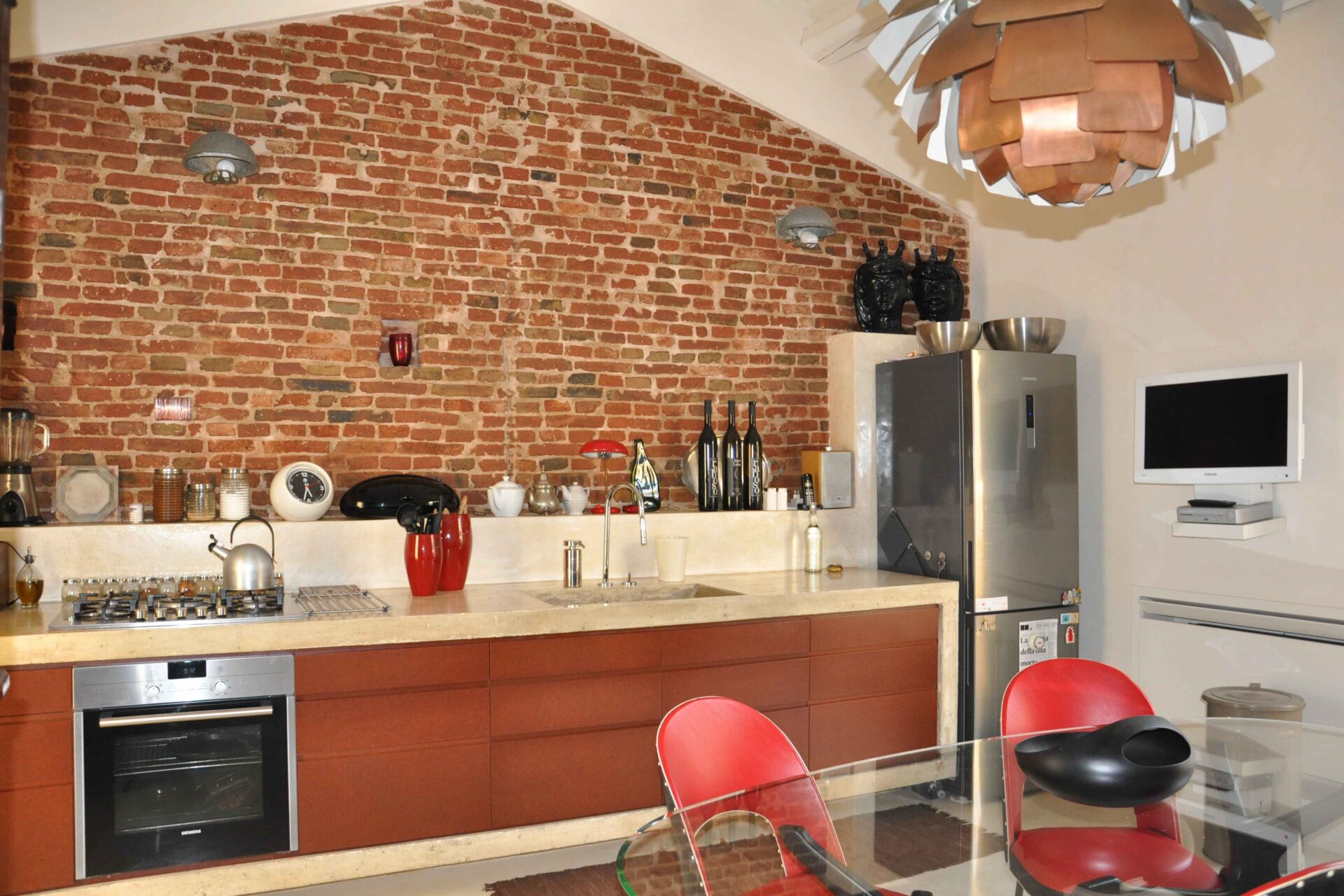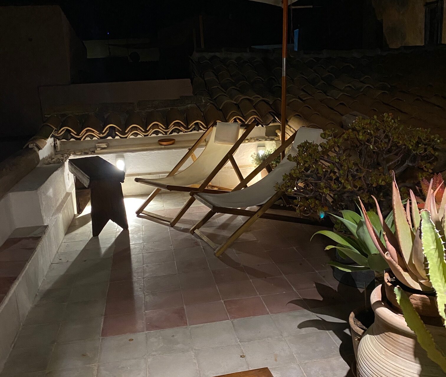 On the second floor, a bright and spacious living area opens onto a large kitchen with a terrace on the same level, along with a second bathroom, also overlooking the courtyard, and a study/guest room.